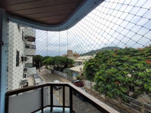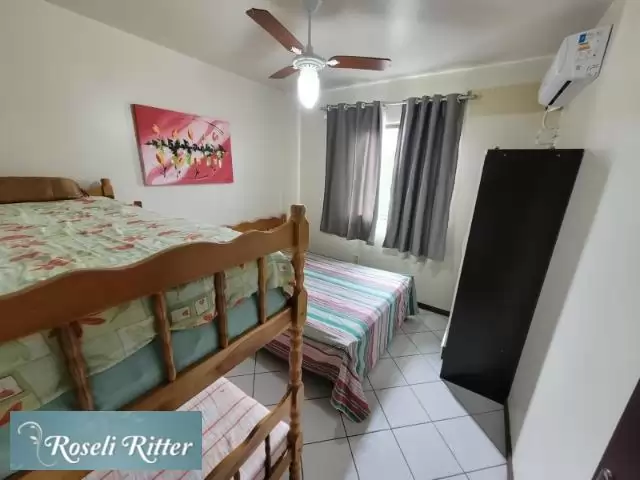 01 suíte de casal com ar-condicionado 01 dormitório de casal com ar-condicionado, 01 dormitório cama casal e 01 beliche com ar condicionado, 01 banheiro social, sala de estar e jantar, cozinha equipada com utensílios domésticos, area de serviço com máquina de lavar, sacada com churrasqueira, garagem para 01 carro.WiFi oferecido como cortesia (sujeita a oscilações, não inclusa no valor da diária), acomoda até 8 pessoas. Esta aproximadamente 80 metros da praia Av. Vereador Manoel José dos Santos, 1722 ? Ed. Baia Azul ? Apto 201A (lateral) ? Centro, Bombinhas.