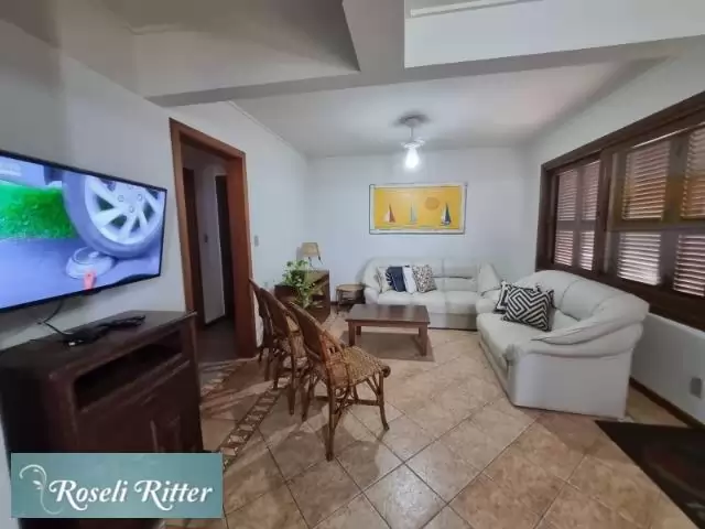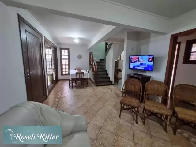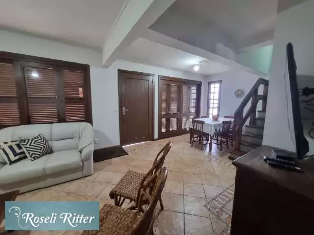 No térreo temos sala de estar e jantar, um lavabo, um banheiro completo, cozinha super equipada com geladeira, freezer máquina de lavar louça e microondas, área de serviço com máquina de lavar roupa, dispensa, garagem coberta para 1 carro mais 1 carro no pátio sem cobertura.