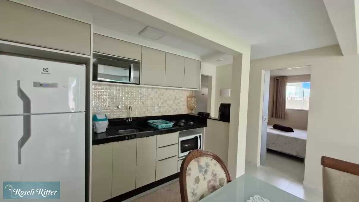 Otimo apto sendo:01 quarto com cama de casal e ar condicionado, 01 dormitório  com cama casal e uma cama de solteiro com ar condicionado, 01 banheiro social,  sala de jantar e cozinha completa com microondas e demais utensilios domésticos, máquina de lavar,  AREA compartilhada com churrasqueira, estacionamento para 01 carro, oferece internet WIFI ( sujeito a oscilações e indisponibilidades, oferecida para os clientes como cortesia, NÃO ESTANDO INCLUSA NO VALOR DA DIÁRIA). Acomoda 05 pessoas entre adultos e crianças.