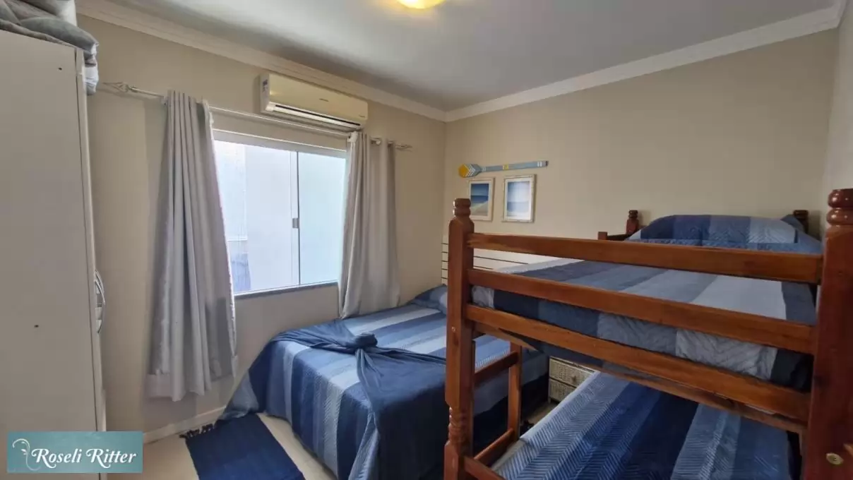 Lindo apto primeiro piso 03 sendo: 01 suíte com cama de casal  com ar condicionado, 01 dormitório  com cama casal um beliche com ar condicionado e mais um colchao, 01 banheiro social, ambiente com TV  sala de jantar,  cozinha com microondas e demais utensilios bàsicos , màquina de lavar, churrasqueira, estacionamento para 01carro, oferece internet WIFI ( sujeito a oscilações e indisponibilidades, oferecida para os clientes como cortesia, NÃO ESTANDO INCLUSA NO VALOR DA DIÁRIA).Rua Pardal 445 - Bombas- Bombinhas.