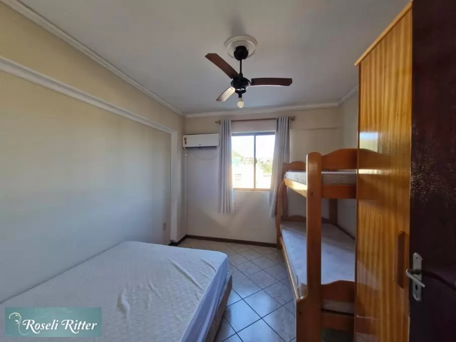 – 01 dormitório com 01 triliche + cama de casal +ar condicionado;