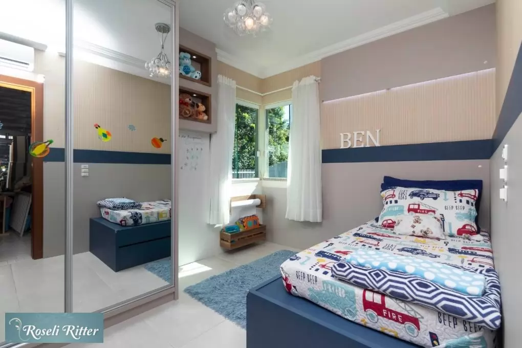 - 01 dormitório com cama de solteiro e cama auxiliar de solteiro, com ar-condicionado