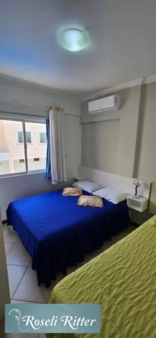 1 dormitório com camacasal e uma cama de solteiro com ar condicionado;