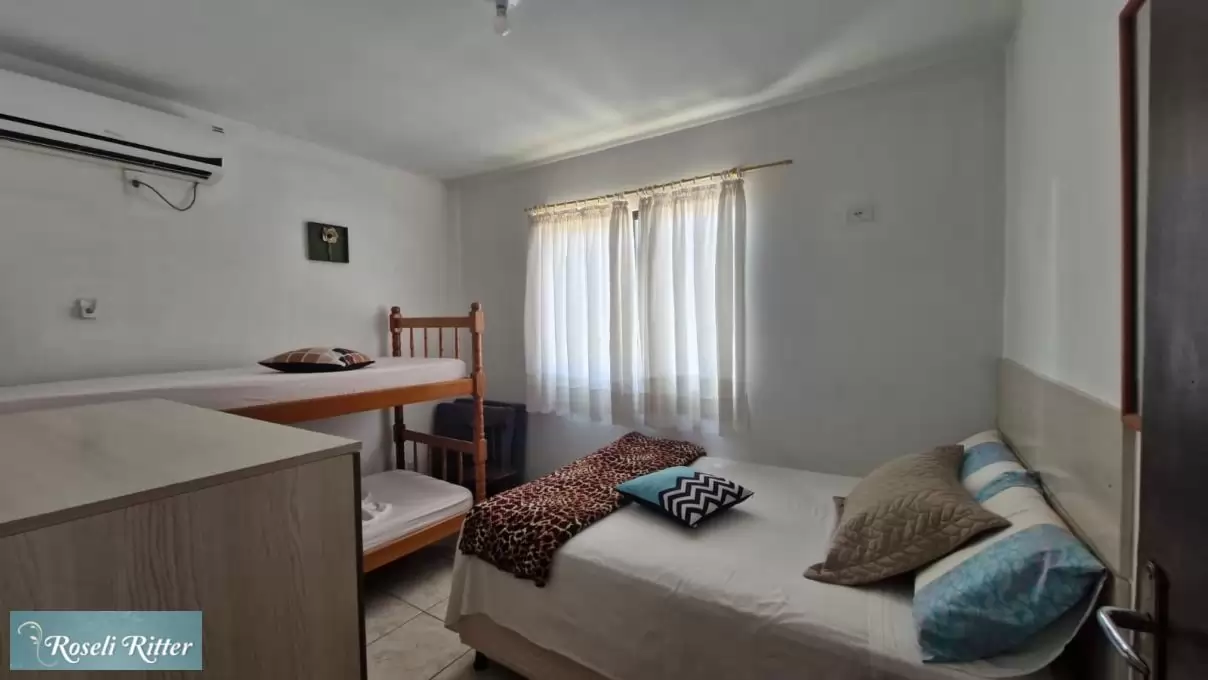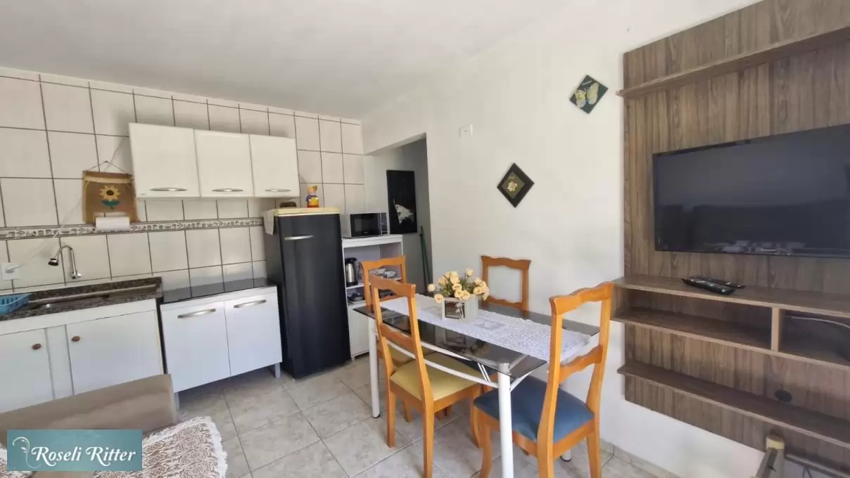 Lindo Apartamento 02 térreo para 4 pessoas sendo, 01 quarto casal com ar e 01 beliche, 01 banheiro, sala e cozinha conjugada, utensilios de cozinha microondas, estacionamento para 01 carro, churrasqueira coletiva, Wi-Fi, mais ou menos 550 metros da praia, Rua Dilma Mafra 488 -centro Bombinhas.