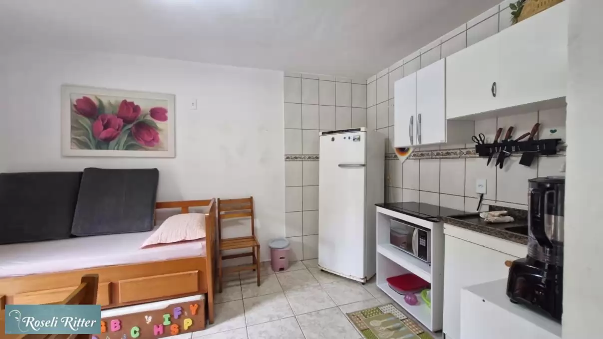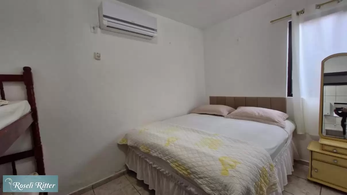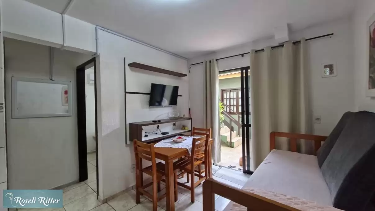 Lindo Apartamento 03  terreo, para 4 pessoas sendo: 01 quarto casal com ar e 01 beliche, 01 banheiro, sala e cozinha conjugada, utensilios de cozinha microondas, estacionamento para 01 carro, churrasqueira coletiva, Wi-Fi, mais ou menos 550 metros da praia, rua Dilma Mafra 488 -centro Bombinhas.