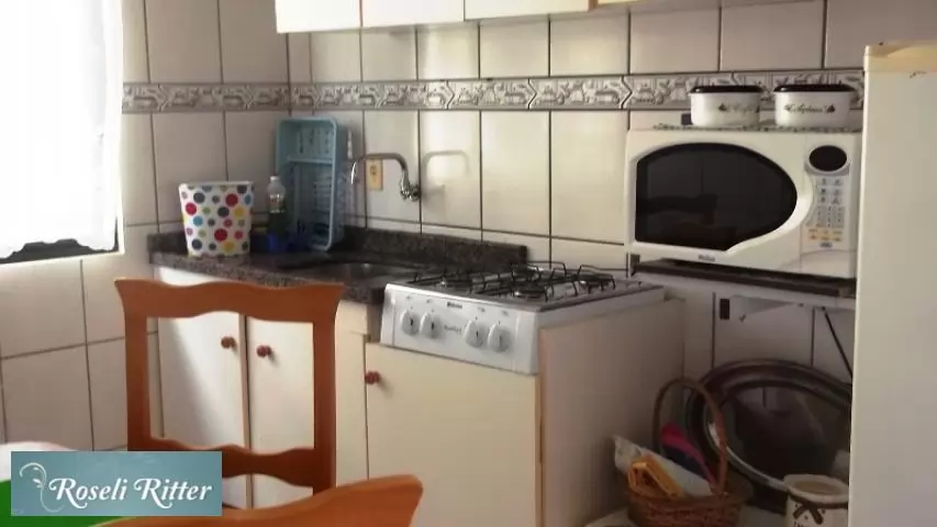 Lindo Apartamento primeiro piso 05 frente para 4 pessoas sendo, 01 quarto casal com ar e 01 beliche, 01 banheiro, sala e cozinha conjugada, utensilios de cozinha microondas, estacionamento para 01 carro, churrasqueira coletiva,tv, Wi-Fi, mais ou menos 490 metros da praia, centro Bombinhas.