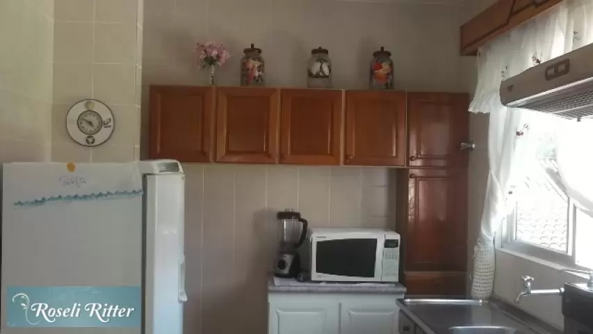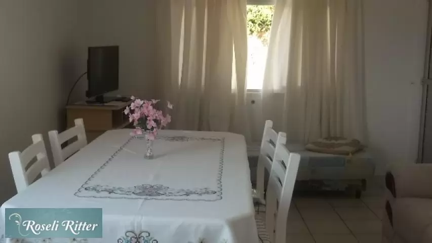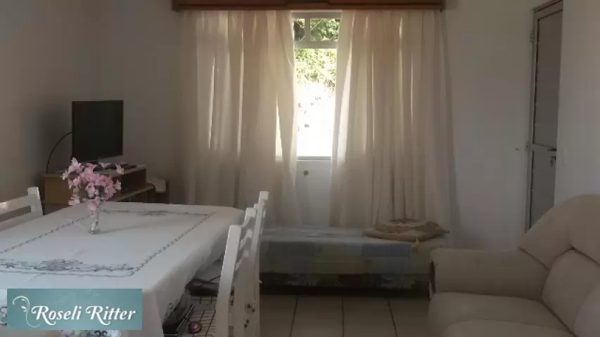 Casa terrea aconchegante sendo 01 quarto casal com ar, 01 quarto de casal com cama de casal e uma cama de solteiro com ventilador de teto, 01 banheiro social, sala com sofa cama, cozinha com utensilios, lavanderia, churrasqueira, garagem coberta para 01 carro, mais ou menos 200 metros da praia centro de Bombinhas;