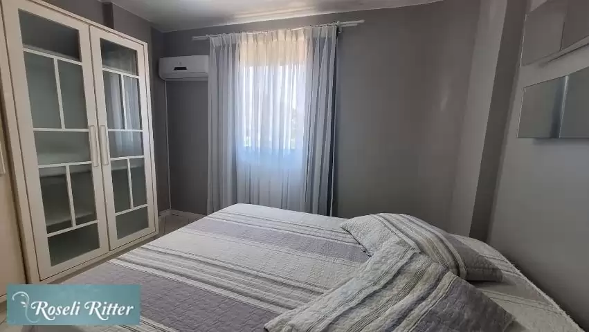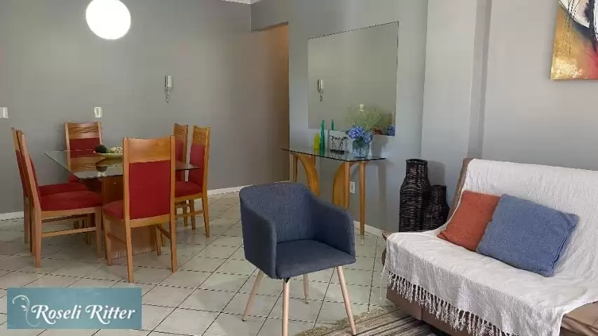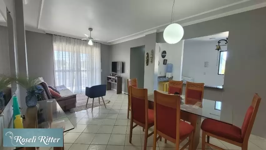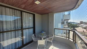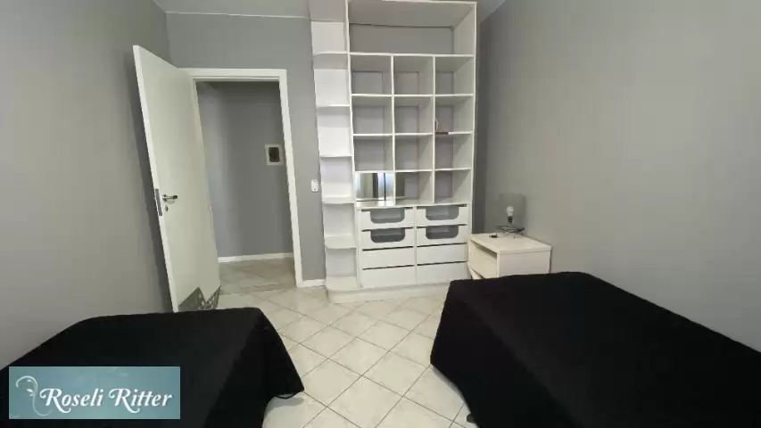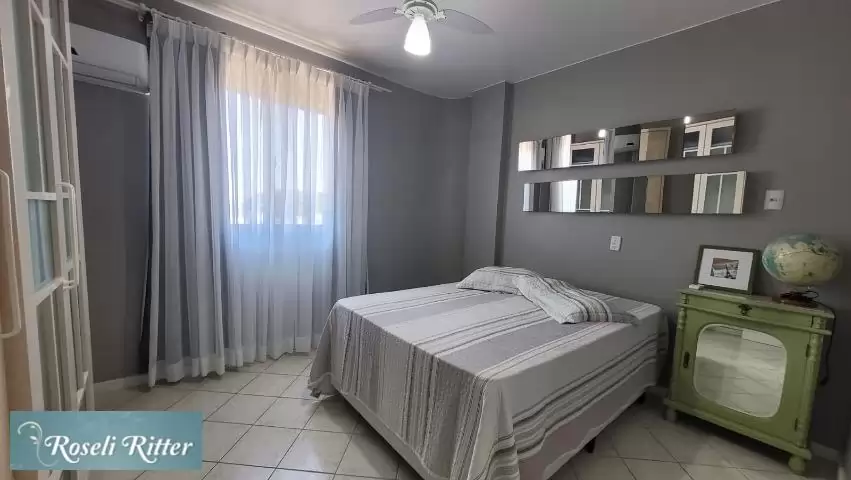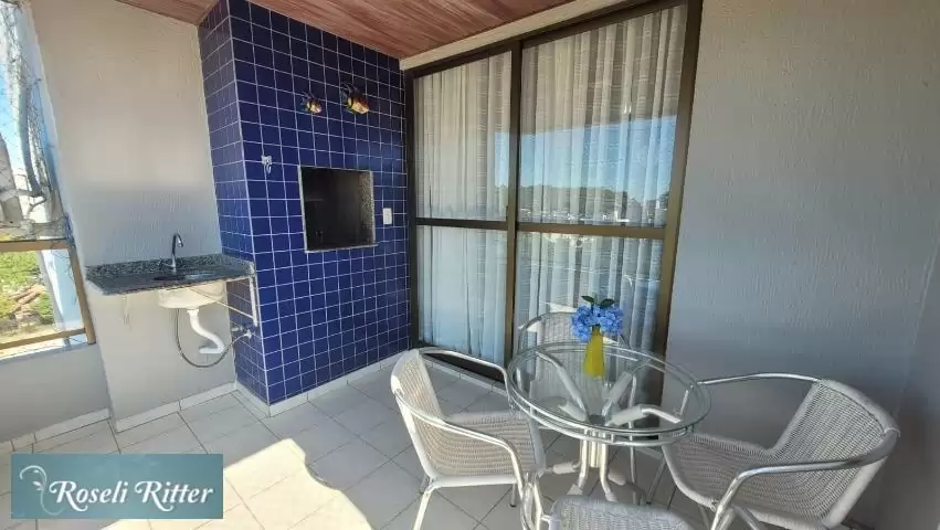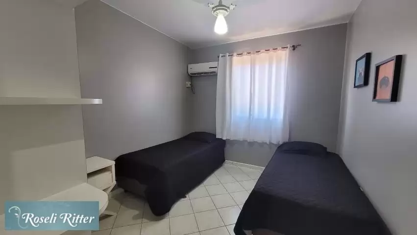 Lindo apartamento sendo 01 suíte de casal com ar, 01 quarto com duas camas de solteiro e camas subselentes com ar, 01 banheiro social, sala de jantar e estar bem ampla, cozinha com microondas e demais utensilios, lavanderia com maquina de lavar,sacada com churrasqueira, pequena vista para o mar, garagem para 01 carro; acomoda 06 pessoas- 401 Bloco C Baia Azul - 80 metros do mar, centro Bombinhas!