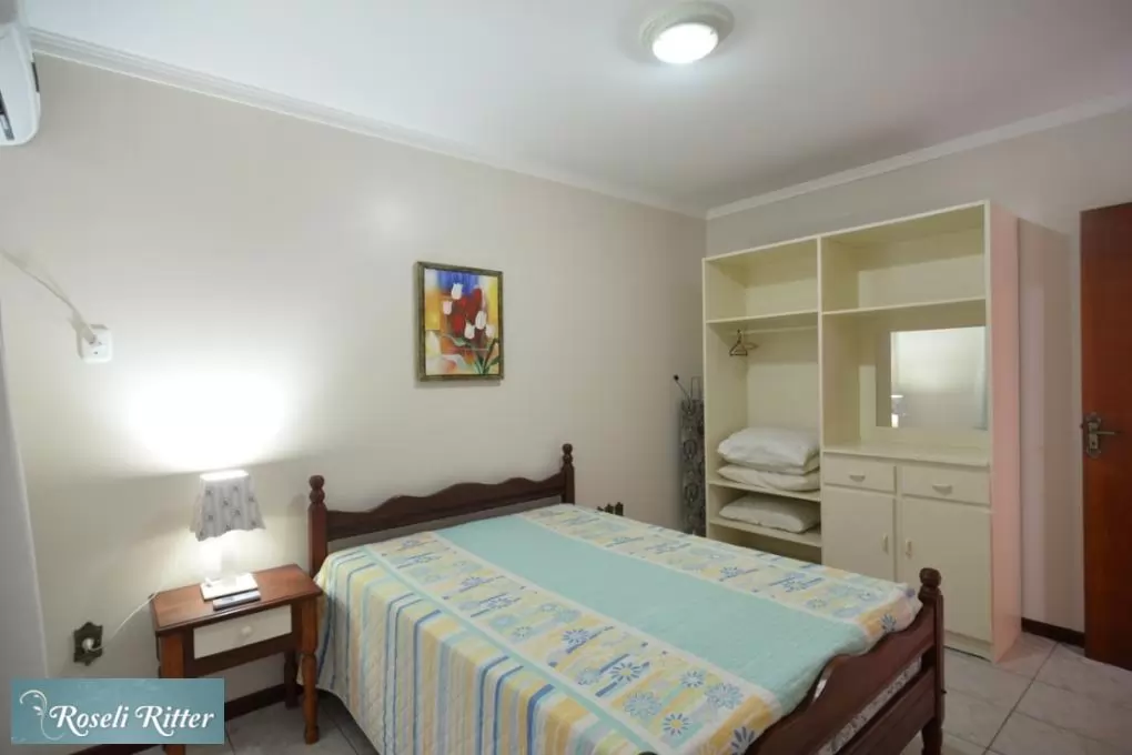 Residencial Quatro Estações Apto de 01 dormitório 102 piso térreo sendo: - 01 dormitório de casal com ar-condicionado - 01 banheiro social - Sala com sofa cama e ventilador móvel, cozinha conjugada - TV, wi-fi, microondas e demais utensílios domésticos - Sacada com churrasqueira, area de serviço com maquina de lavar - Garagem coberta para 01 carro pequeno- Acesso . - Acomodação: 02 adultos e 02 crianças - Distância: +/- 300 m da praia - Localização: Rua Parati 344– Centro Bombinhas.
