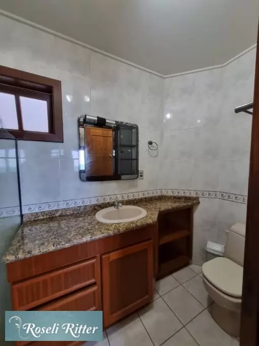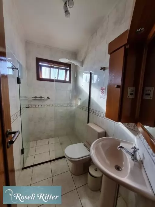 No 2° pavimento temos um banheiro social, uma suíte de casal, um quarto de casal, um quarto de solteiro para três pessoas todos com ar condicionado e uma sacada com churrasqueira.