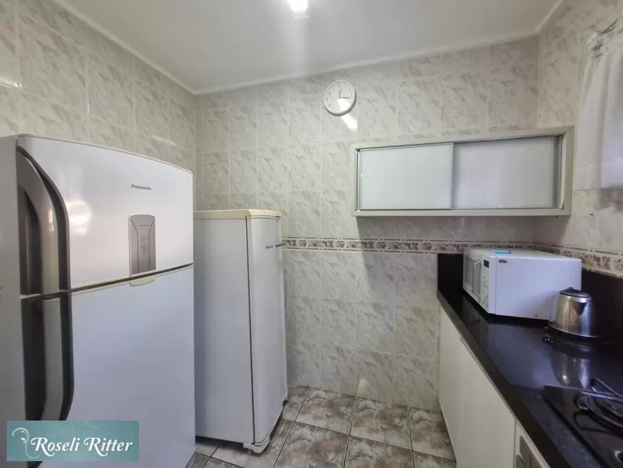 sacada com vista para o mar, cozinha equipada com utensílios, freezer,