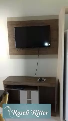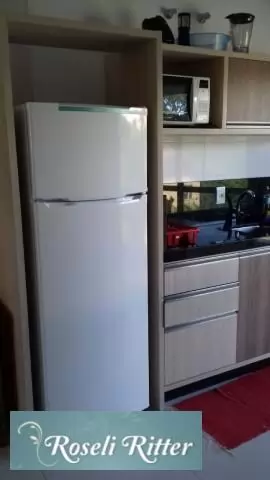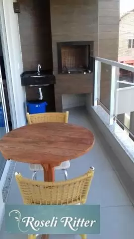 Apartamento no primeiro andar por escada, 1 quarto com cama de casal com ar condicionado, 1 banheiro, cozinha completa com microondas, sofa cama, sacada com churrasqueira. area de lavação.